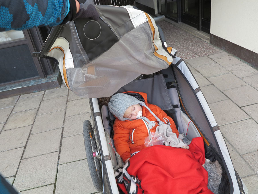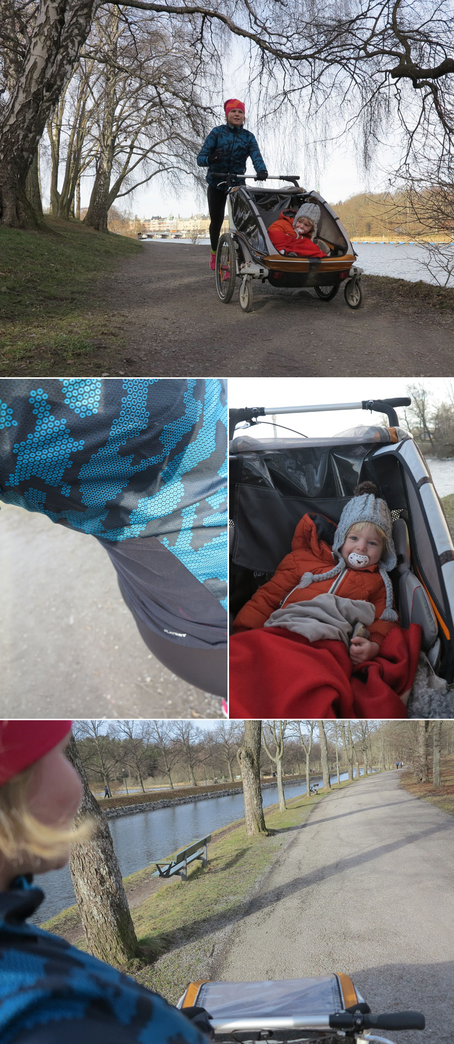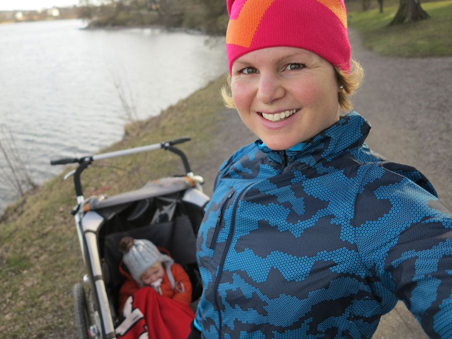 Jonna somnade under vagnens tak efter en stund och jag sprang hem utan fler bloggpauser förrän den här bilden. Tidsmässigt ett riktigt långpass, och distansen landade också på hela 10 km. Sen var det två pigga och glada tjejer som gick in och åt gröt.