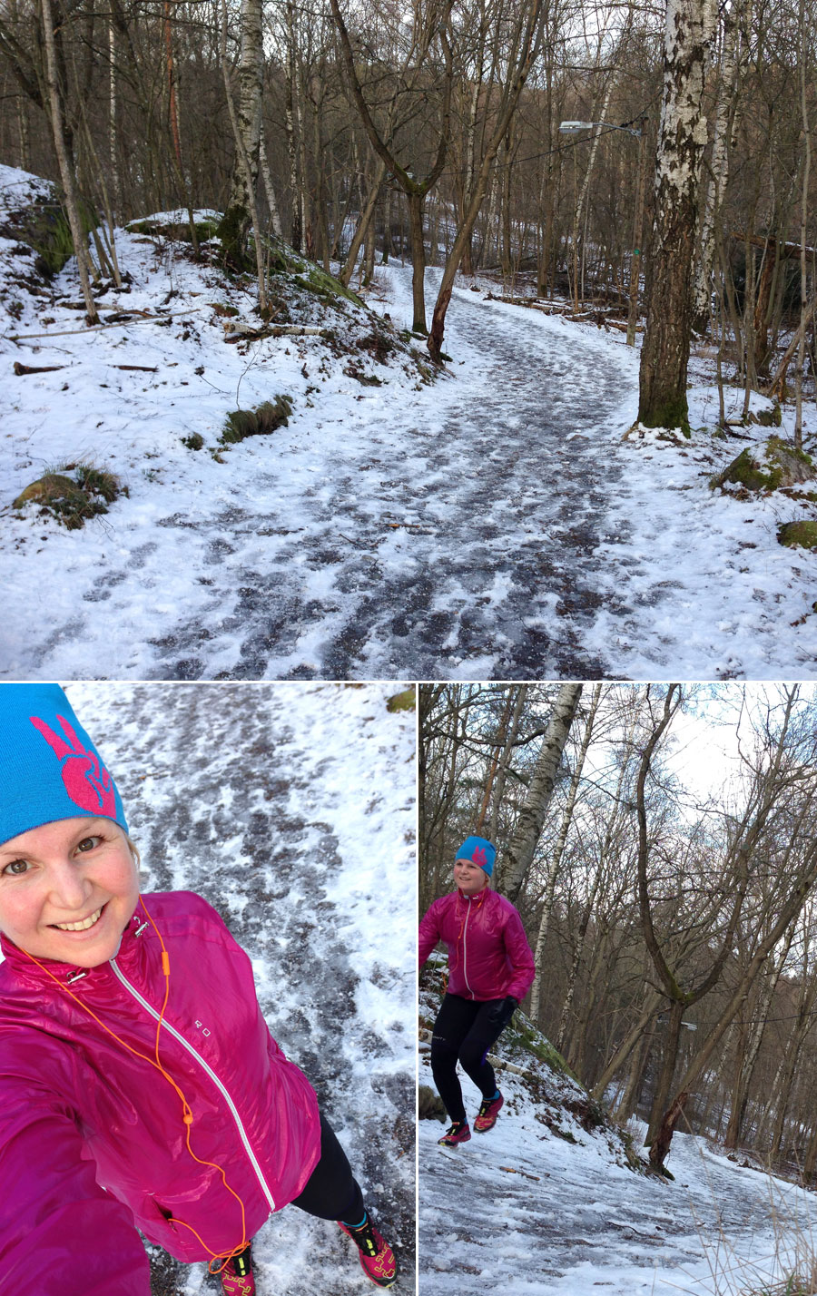 Dagens löpkläder: Mössa – Seger, jacka – Röhnisch, underställ – Icebreaker, tajts – Craft, långa varma kompressionsstrumpor – Gococo, skor – Icebug, vantar – Nike.