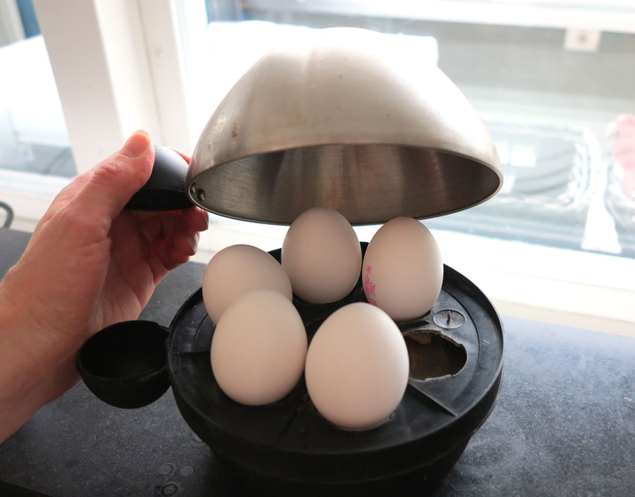 Äggkokaren. Är det någon hushållsmaskin som går varm här hemma är det den. Kokar jag 5 ägg samtidigt tar det ca 10 minuter innan maskinen tjuter. HÖGT! På den tiden hinner jag klä av mig, duscha, smörja in mig och få på kläderna.