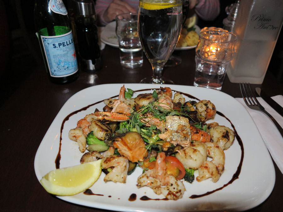 …äta middag med Kattis istället. Vitlöksbröd och grillade delikatesser från havet. Stockholm har många restauranger att erbjuda, men vi chansade på ett lugnt och pratvänligt ställe nära hotellet. Mycket god mat, och nu har allt mellan jobb, barn, bostad, träning, förskolor, mat, presenttips och personliga problem avhandlats. Typ en heldags terapi av bästa slag.