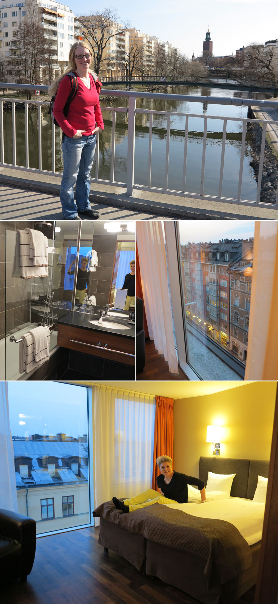 ..vår långpromenad från Gärdet till Clareon Amaranten på Kungsholmen. Som sagt – stora delar av Stockholm är oupptäckta för mig, och lokalsinnet är inte vad det borde. Vi irrade bort oss och gick säkert en omväg på 30 minuter. En så vacker dag, och med så mycket att prata om spelade det ingen roll. Dessutom väntade ett superfint rum på 7e våningen på oss, med utsikt över hela Kungsholmen och kungligt sköna sängar. Provligga är nr 1 på hotell för mig. Högsta poäng till Amarantens!