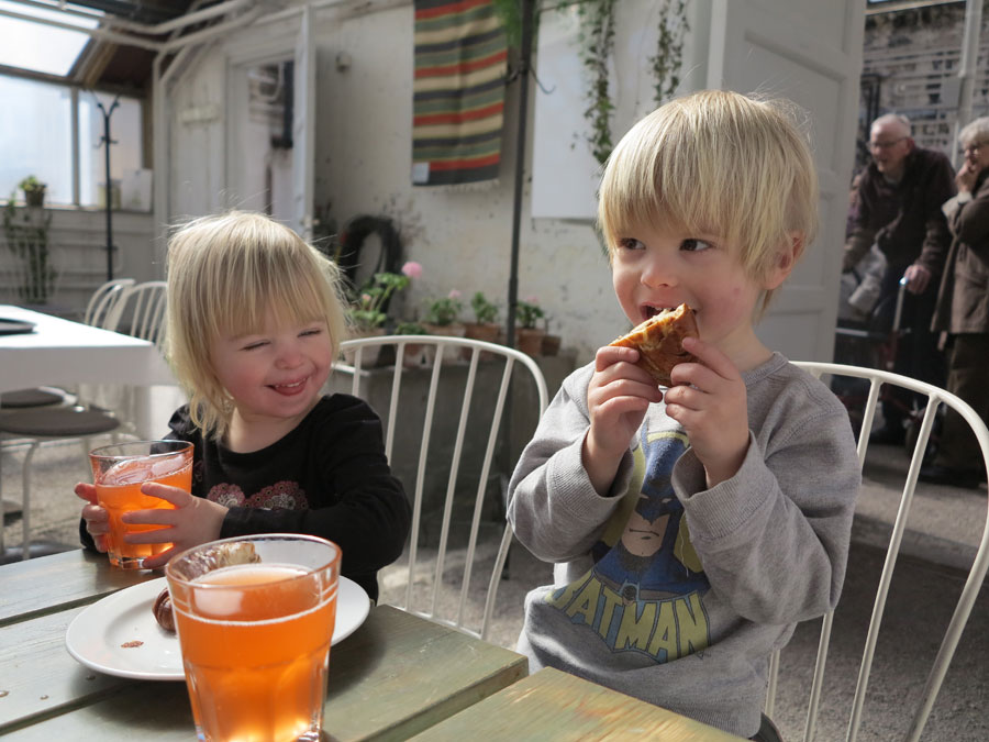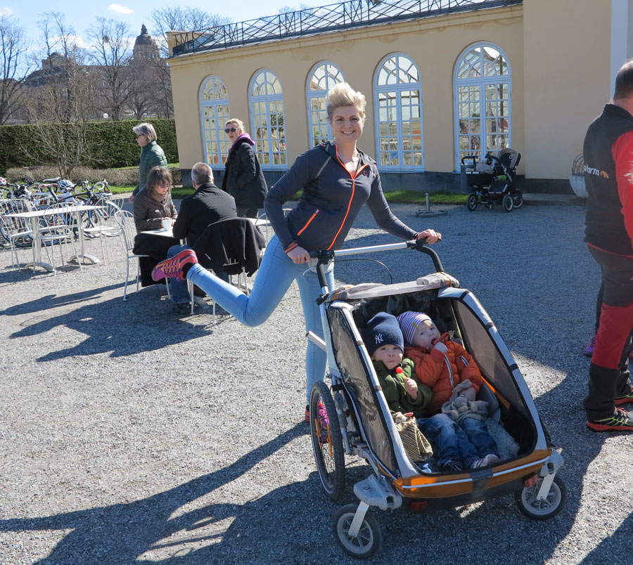 Mina bloggassistenter var med hela tiden i Chariot-vagnen, fikade bulle och lekte med stenar på Orangeriets grusgolv. De har roligt i de flesta miljöer och det krisade bara en stund vi inte hittade Juniors Tidis (snutte-tiger), men den hade bara hamnat uppe på en dörr (!). Allt gott – slutet gott 🙂