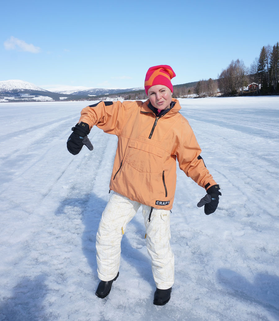 En tradition jag glömde nämna i gårdagens inlägg om vad en riktig påsk är för mig – ett glädjehopp. På fjälltoppen av Klumpliklumpen blir det ännu mer frihet- och storhetskänsla, men igår fotade jag och syrran en light-variant på sjön som får duga istället.