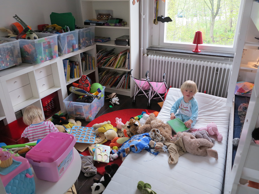 Medan jag flyttade kläder möblerade Jonna och Junior i sitt nya rum. Det är galet hur de kan dra fram grejer – därför är en tur ut viktig oavsett väder. Jag är ingen barnexpert men försöker så mycket som möjligt sätta mig in i deras värld. Hur skulle jag själv känna? Vad gillade jag själv som barn? De måste få leka utan att jag springer och plockar konstant. Och de mår bra av frisk luft och att röra på sig precis som jag, så fotbollsmatchen på gården och lek i leran var välbehövlig.
