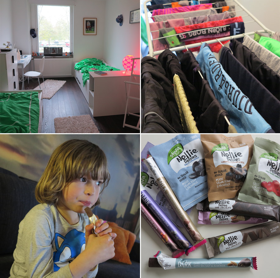 Övrigt spännande från min lördag var att bestiga tvättberget, rita, träna, bada av tvillingarna, göra tortilliapizza och testa godis jag fått hem. Nyheter från Nellie Dellies som är sötade med stevia samt chokladsticks från Anthon Berg. Saltlakritsen och den mörka chokladen får tummen upp av steviagodiset, men det andra föll inte mig i smaken. Stevia har tendens att ”tränga igenom” och ge en konstgjord smak ibland. Sockerchokladen från Anthon Berg däremot var gudomlig tyckte både jag och Hampus. Speciellt den med havssalt och mandel och sorten med hettande chili.