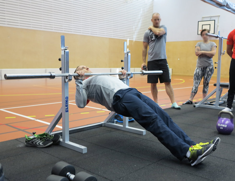 En vanlig press mot taket med stång däremot behärskar de flesta som inte har axelproblem. Finns såklart ett och annat att tänka på där också, men den är en bra övning att börja med bland pressarna..
