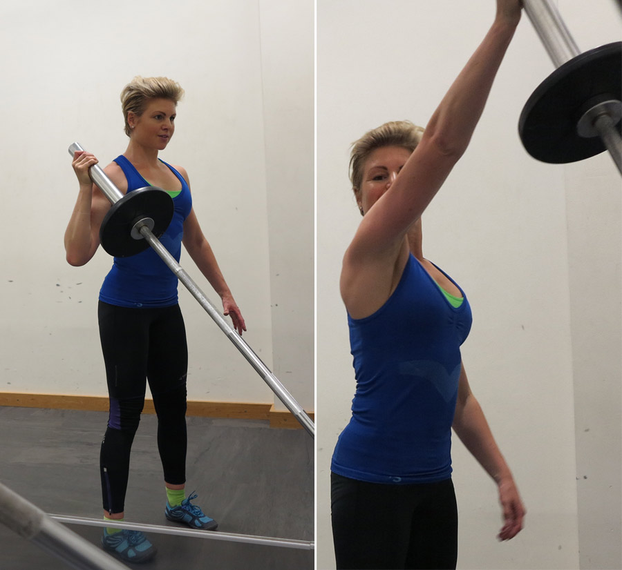 Och eftersom jag vill bli bättre övar jag. Inte bara på gymmet med overhead squat och Standing 1-arm Landmine Press som du ser ovan, utan även på de teoretiska delarna av PT-utbildningen har jag läst under dagen. Men det är mycket att smälta så pauser behövs – min med en tur till gymmet för att öva på de praktiska bitarna.