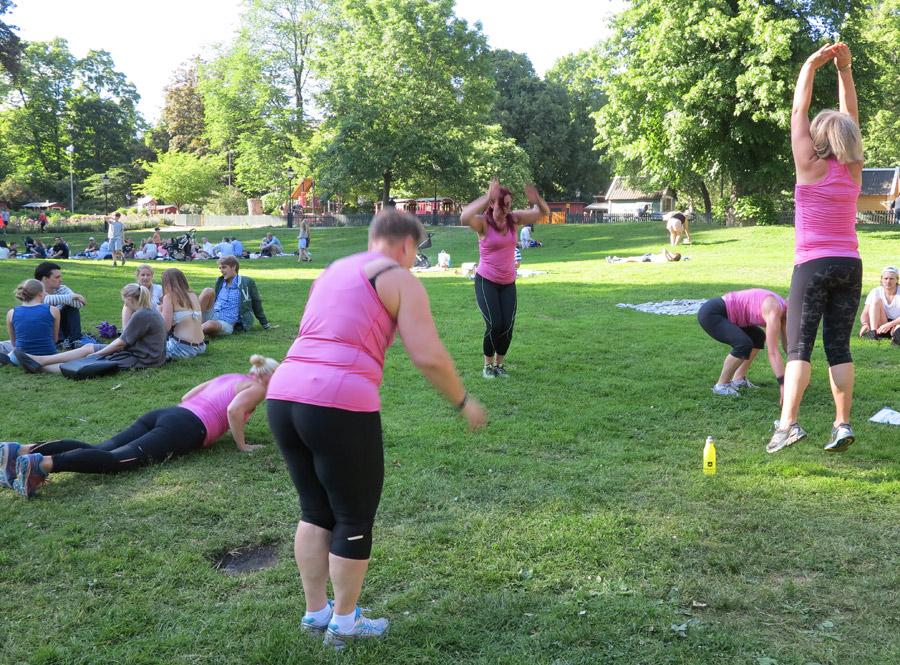 Ännu en gång kunde jag cykla hem från Humlegården med bröstet fullt av kärlek. Som Milla skrev tidigare är det ingen hög timlön att anordna event men det återbetalar sig flera gånger om på andra sätt. Det är inte klokt vad lite gräs, svett och gemenskap kan göra. Hur människor kan knytas samman av ett gemensamt intresset för puls och rörelseglädje. Alla verkade nöjda och vissa av deltagarna som läser min blogg delade ut svettiga kramar och vänliga ord. Jag tackar ödmjukast och känner mig lyckligt lottad. Och lyckat blev gårdagens Get OUT to workOUT ihop med Milla.