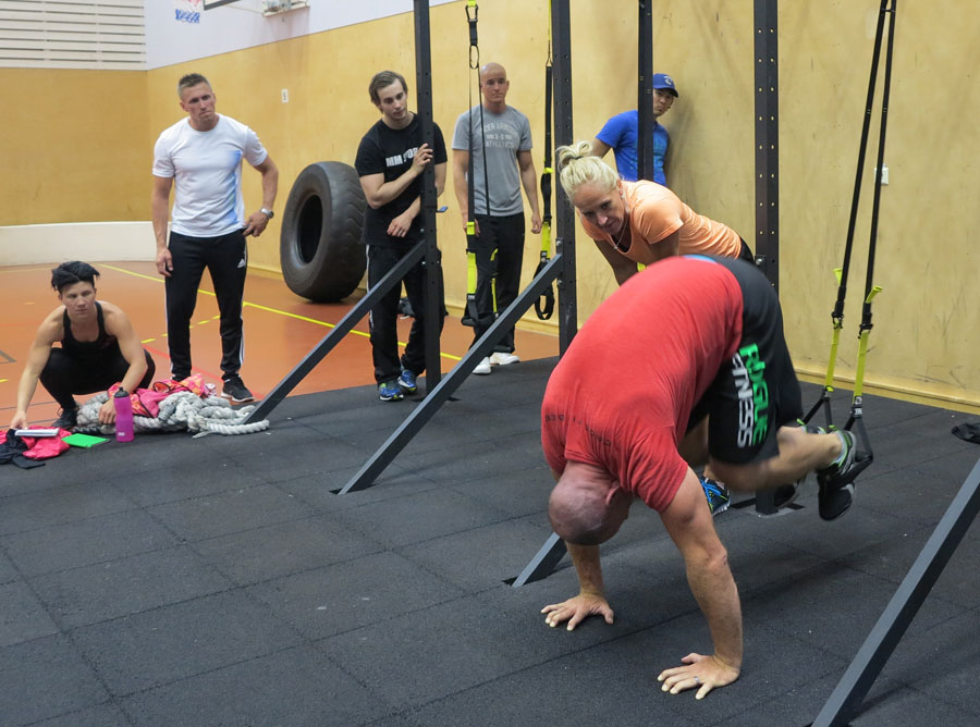 Som påminnelse till min egen, och alla er andra som också kör sommarträning med suspension trainer, kommer här en bra övning för både bröst, axlar, core och mer ytliga magmuskler. Startläget är en hög planka med fötterna i handtagen, håll en rak, spänd kropp (ja, även benen och rumpan) och 1. – gör en armhävning.