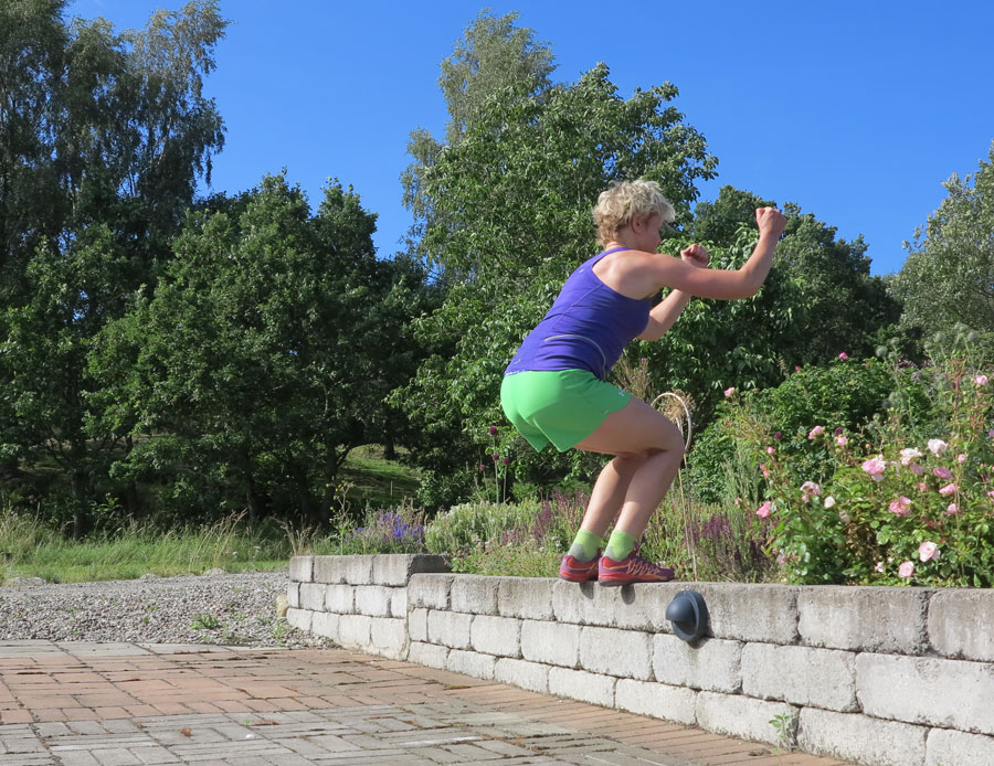 Spänsthopp är en sådan där powerövning som jag blir så glad av att klara och hyser stor respekt för. Blir det för högt låser sig benen och jag får tvångstankar om att slå i smalbenen. Jag är helt enkelt för feg, och håller mig därför till lagom höga steg som de jag körde nyss och du ser på bilderna ovan. Förutom hoppen några andra benövningar med TRX som jag visar en annan dag. Hej hopp!