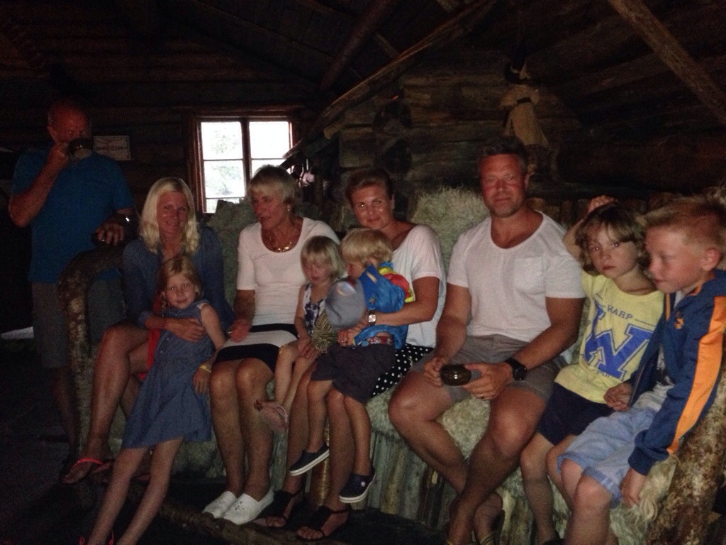 Med så mycket att fira hade vi bokat middag på byns enda restaurang som ligger tvärs igenom skogen från föräldrarnas gård – Korpens Öga. Ett häftigt hus i vikingastil med grästak, stengolv, urhuggna trädstammar som stolar och öppen eld i mitten. Ola som driver gården med islandshäst-turer, hotell, mat och ett kapell där jag och Jonas gifte oss, är dessutom duktig på att spela gitarr och sjunga. Igår bjöds vi på live-musik och god mat.