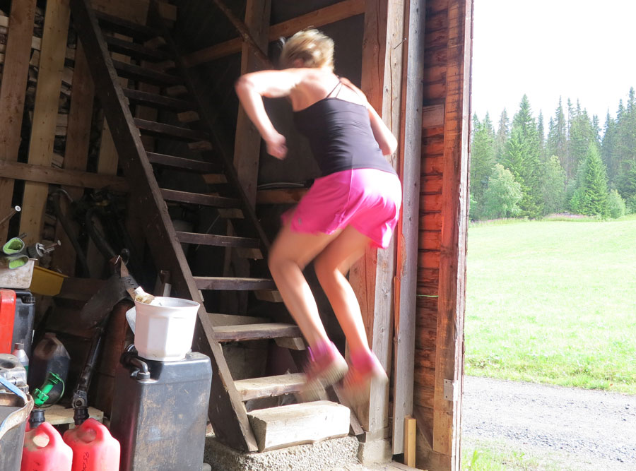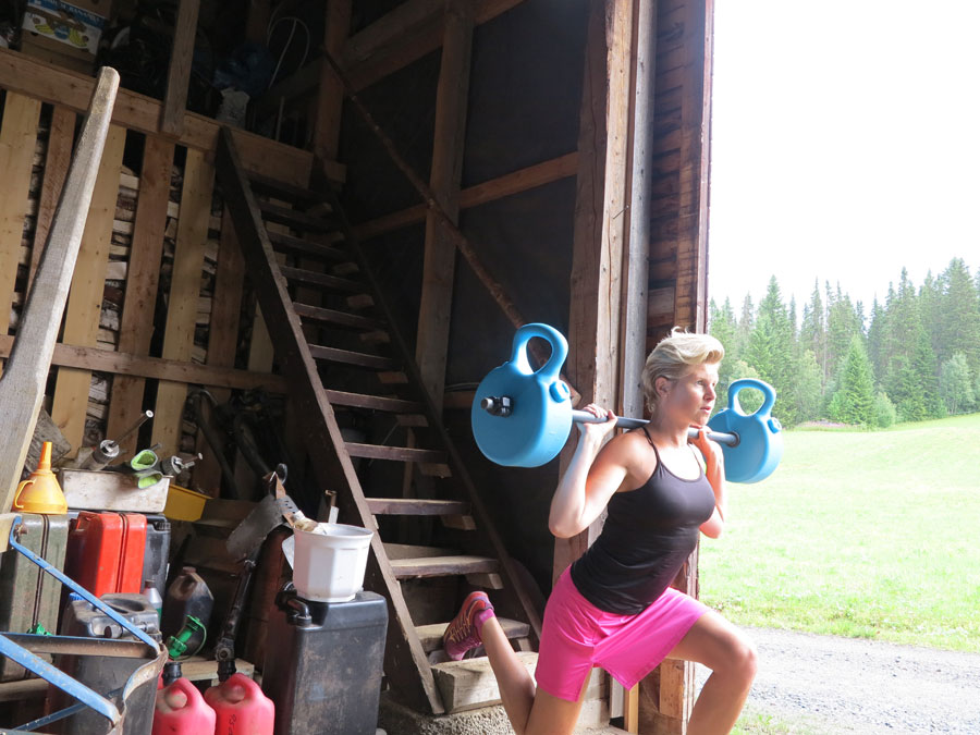 Du vaknar upp av ett skarpt sken genom rullgardinen, knallar – skrämmande likt atombomber (borde låta så) och hällregn på taket. Stängt utomhusgym, men då får det helt enkelt flytta in istället. Lite halvt i alla fall. Pappa har ett stort garage i två delar – en isolerad och en med jordgolv, den s.k. ”kalldelen”. Där körde jag ett benpass i går morse som bestod av 4 övningar med 4 set á 15 repetitioner.