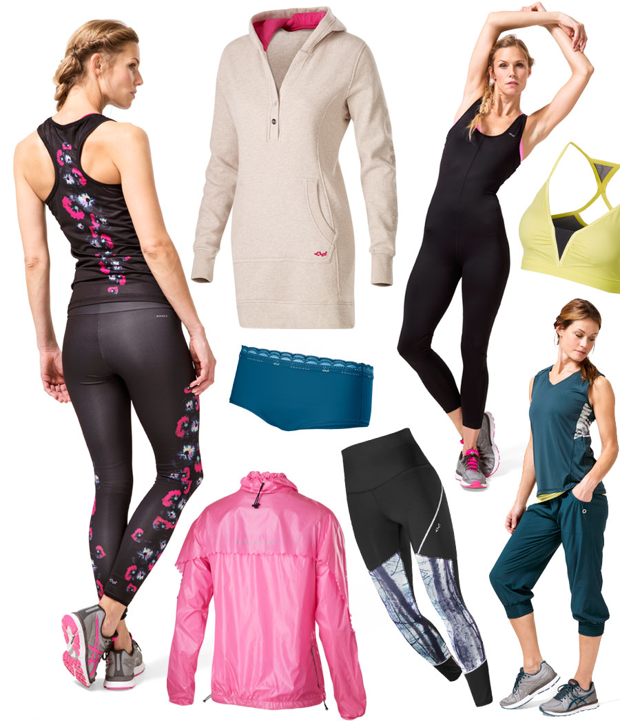 Casall satsar som vanligt på snygga ryggar och i övrigt sexigt ormskinnsmönstrade tights varvat med klara färger och sköna oversize plagg.