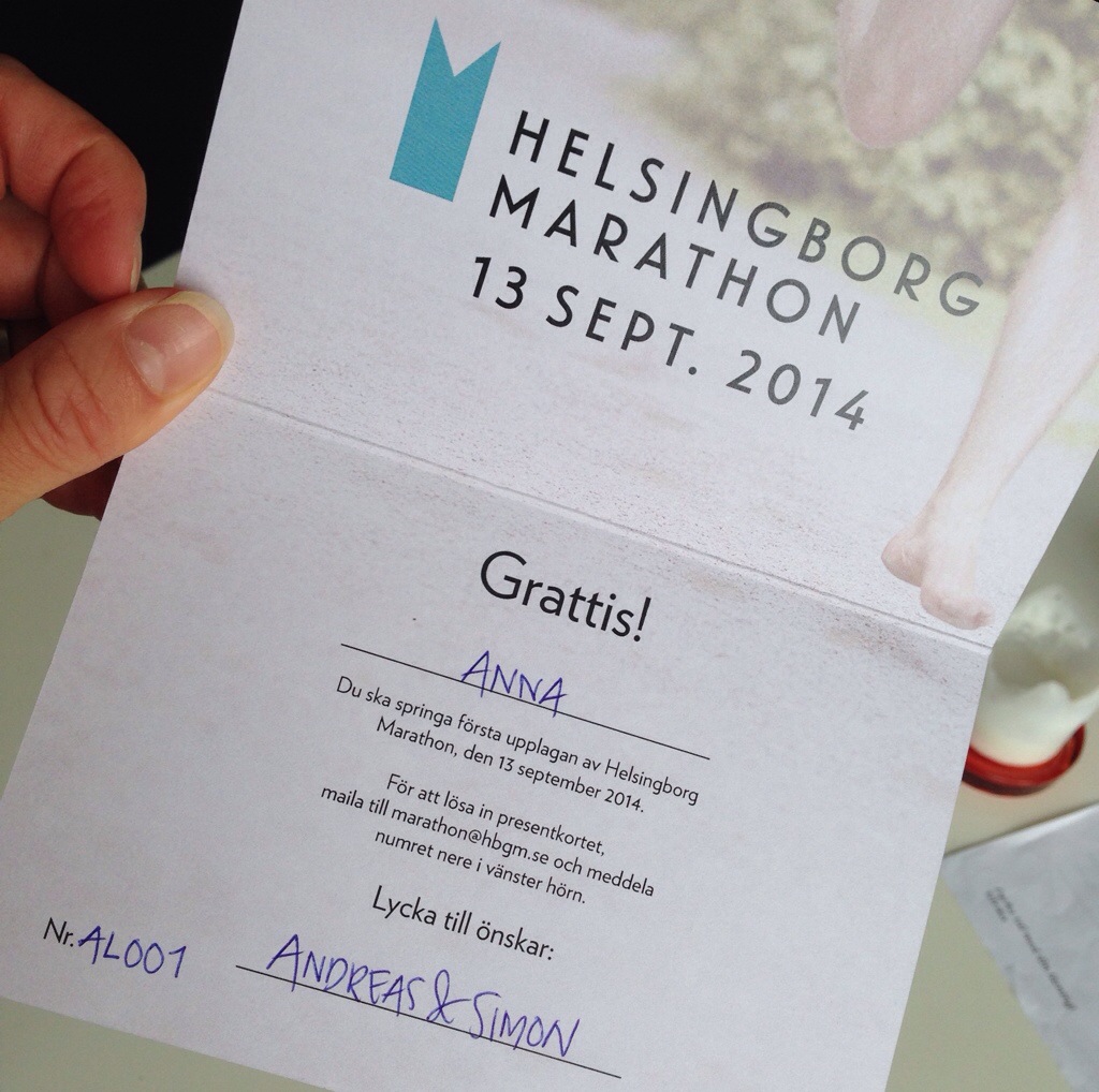 Till Stockholm Marathon 2012 hade jag tränat ända från vinter och det gick ju bra (efter omständigheterna), men när jag senare på dagen fick ett brev med denna inbjudan trodde jag först det var ett skämt. Jag fyller år 13 september så ”grattis” stämde ju bra, men att ”du ska springa Helsingborg Marathon”.. Om 5 veckor! Jag har inte sprungit längre än 12 km sen halvmaran i våras. Kanske dumdristigt att ställa upp med tanke på skaderisken, men en mara i vackra Skåne lockar verkligen. Det är första gången loppet går och utmaningen lockar verkligen. Dessutom hinner jag ju inte ens bli nervös.