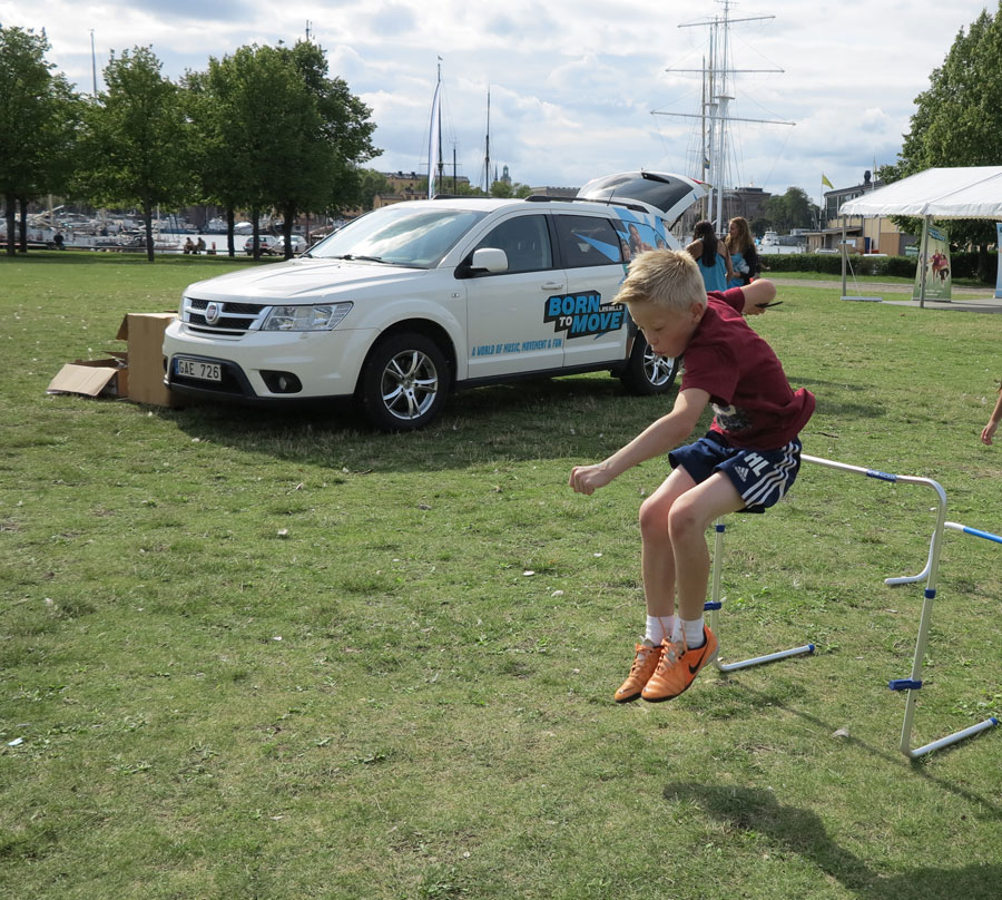 En hinderbana var uppriggad och i ett tält intill kördes Les Mills BORN TO MOVE™ – klasser för barn i 5 olika åldersgrupper med musik och rörelser som ska öka självförtroende, kroppskännedom och ge glädje. Jag kikade lite medan mina vindlingar hellre hölls sig till att krypa över/under och i hinder, och dansklassen är uppbyggd med enkla rörelser där instruktören använde mycket liknelser och bygger upp en låtsasvärld precis som i vuxenklasserna IMMERSIVE FITNESS™.