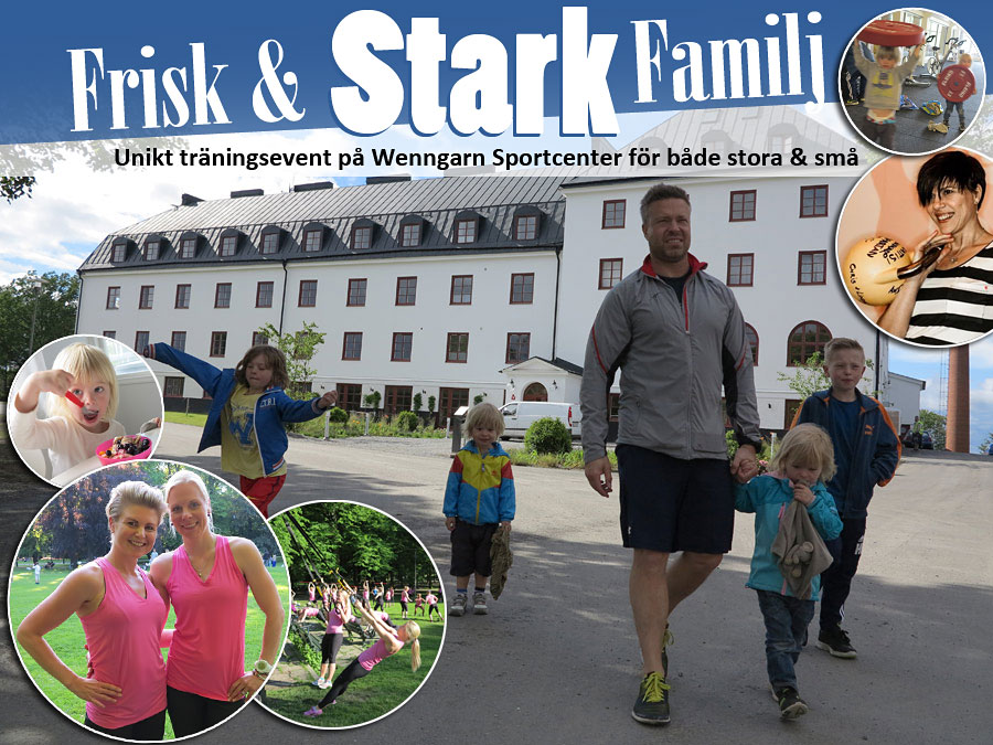 27-28 september arrangerar jag och Milla eventet ”Frisk & Stark Familj” tillsammans med Wenngarn Sportcenter – ett unikt hälsoevent med lika mycket fokus på oss vuxna som våra barn.  I ”Frisk & Stark Familj” ingår inspirerande träning – både tillsammans med våra barn vid ”Get OUT to work OUT Family” och sedan var för sig, all-inclusive med övernattning och god, hälsosam mat på Hotell & Restaurang Anstalten, föreläsning om familjens hälsa, hinderbana och skattjakt för barnen i äkta slottsmiljö. Passen leds av duktiga profiler inom träning, bland annat Jonas Lissjanis och Betty Erös Wassenius. Det ingår fina goodiebags, massor av överraskningspresenter lottas ut, och ett schema som även ger plats för egen tid att umgås och koppla av tillsammans med familjen.