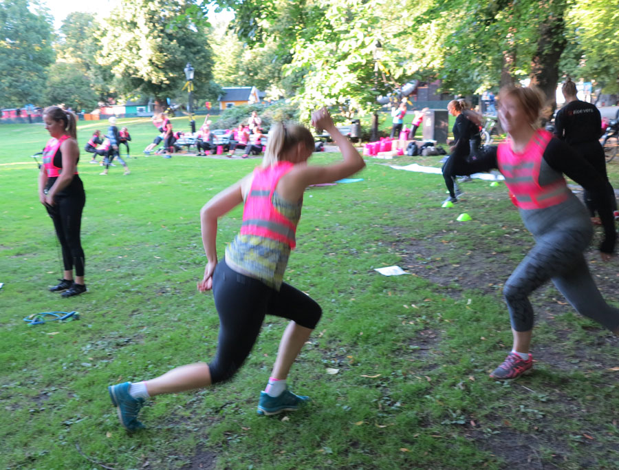 Roligt är även att Röhnisch var med oss den här gången som huvudsponsor. Isabel klädde upp mig och Milla i snygga Vilja Print Shape tights med skön hög midja, samt Vilja Zip Long Sleve-tröjor i funktionsmaterial ur höstens kollektion. Passande mönster till utomhustemat bland Humlegårdens björkar. Dessutom sponsrade hon med alla de fina reflexvästarna i spets och ett varsitt hopprep som deltagarna använde i delar av träningspasset.