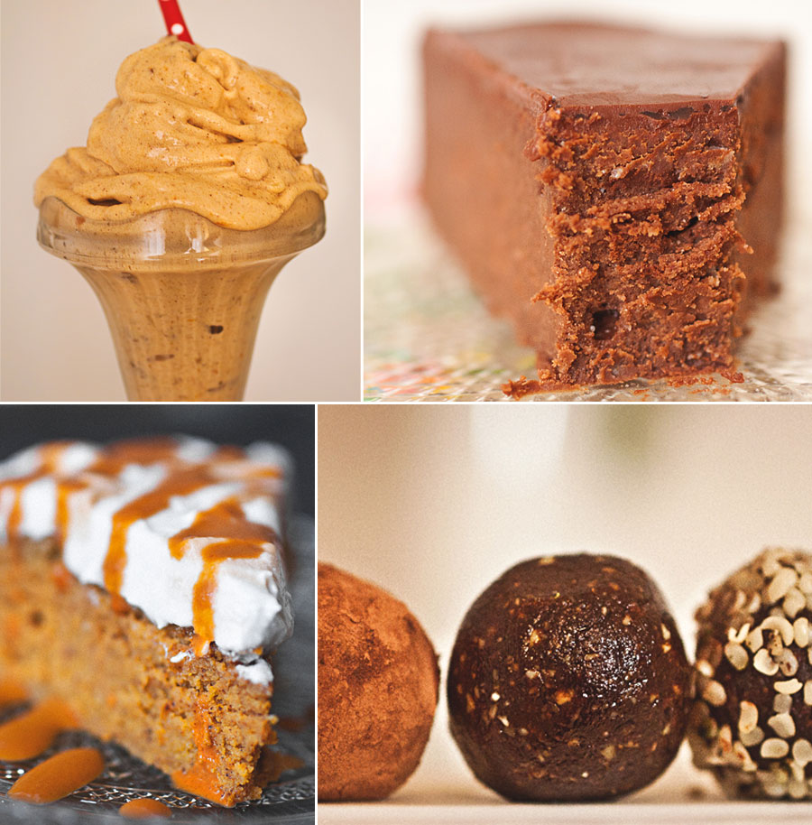Några av alla Fannys frestelser som ligger hennes blogg just nu. Från vänster: Carrotcake Nanacream, Fransk Chokladtårta, morotskaka med kolagräddsfrosting, kolabollar.