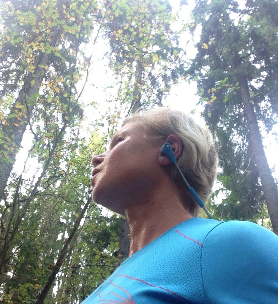 Dagens träning blev en av de bästa mixar jag vet – 45 min hård backträning + yoga. Löpband är ett sätt att tidseffektivt och smidigt kombinera olika pass, men jag föredrar att springa i skogen och ladda med sol och syre. Därför fick jag tänka till gällande kläder och prylar. Vätskebälte med plats för vattenflaska, nycklar och träningskort. En torr överdragströja knöt jag runt midjan och strumporna torkade under yogaklassen. Min sköna söndagslyx!