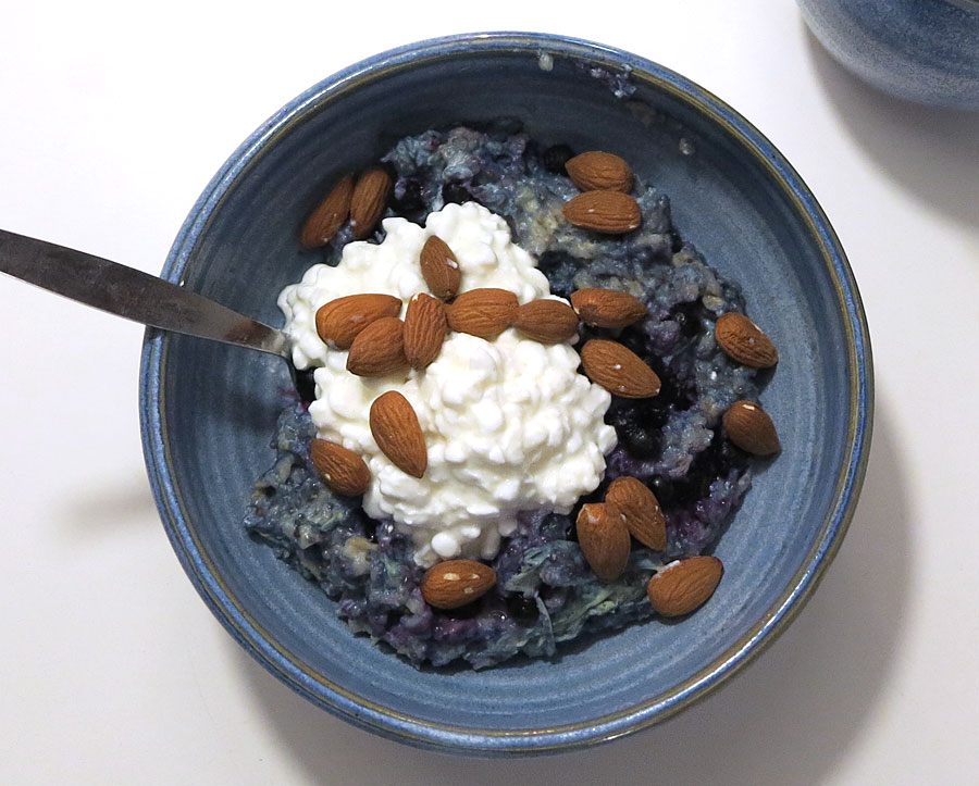 Och slutligen mumsiga antioxidanter i form av blåbär, mina extra fina från Jormskogen. Jag häller i dem direkt från frysen så blir de lagom upptinade till att äta.