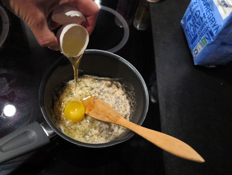För naturligt protein-, vitmin-, mineral- och fett-tillskott ett ägg direkt i gröten när den kokt klart. Tidsbesparande mot att koka ägget vid sidan av, och gör gröten sådär fluffigt god.