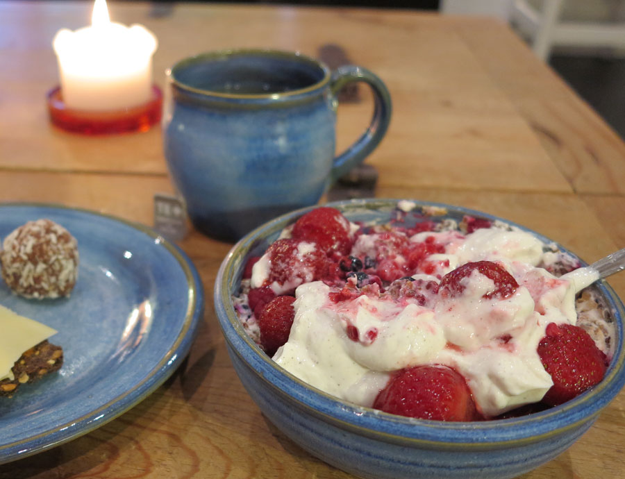 - Kall gröt? Till frukost nr 2. (springer aldrig på helt tom mage) testade jag Overnight Oats för första gången. Typ chiapudding med mer energi p.g.a. havregryn i. Gjorde lite extra mysigt i min ensamhet med levande ljus, och åt ihop med fröknäcke med ost, chokladboll, te och toppade gröten med jordgubbar och vaniljkesella.