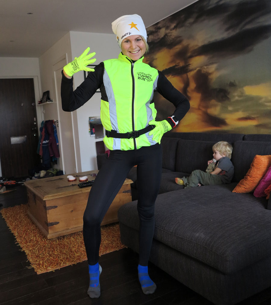 Så hur var Tunnel Run? Efter att ha skickat ut en sockerspeedad mellanson + 3 polare, man och äldsta son på fotfollsträning, och småttingarna fått rosa nagellack som ”måste torka” ska jag berätta. Jag kan ju inte bidra med så mycket matnyttigt inför framtiden eftersom loppet bara gick en gång, men kanske lite löpinspiration? Laddad med havregrynsgröt och en fet kaffe timmen innan rullade jag ner för Värtavägen mot start. Dagens löpkläder ser du ovan – långa kompressionsstrumpor från Gococo, Tunnel Run-attiraljer och resten CRAFT som jag sprang loppet för.
