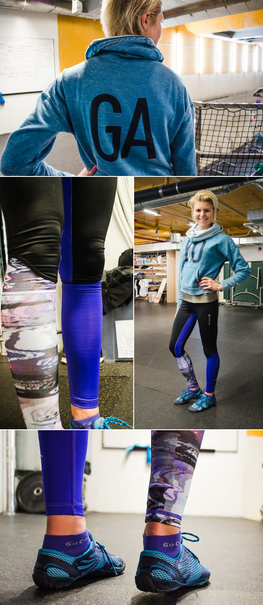 Men som modeintresserad gillar jag ändå snygga och passande träningskläder, även om jag inte tänker på dem när jag väl tränar mer än för sin funktion. Reebok är crossfit för mig, så min sköna hoodie och tajts med extra kompression över vaderna av märket kändes helrätt. Till det lite lördagsglam med bronsfärgat linne från Casall, samt matchande strumpor från Gococo och skor från Merrell.