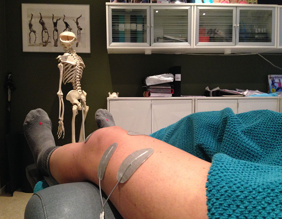 Tjohoo – inget löparknä! Istället ett ”hopparknä”, vilket känns bättre för mig som älskar löpning. Detta besked lyste upp den regniga måndagen, då jag medvetet cyklat runt i blå skoskydd för att inte bli blöt om skorna. Från PT-kunder på Elite Rehab Studio, vidare till företagsträning och så Elite Rehab på Södermalm där min kollega Gustav Ström håller till med sin naprapatverksamhet. Idag tog han en titt på, strömbehandlade, masserade och stretchade mitt knä/lårmuskel.