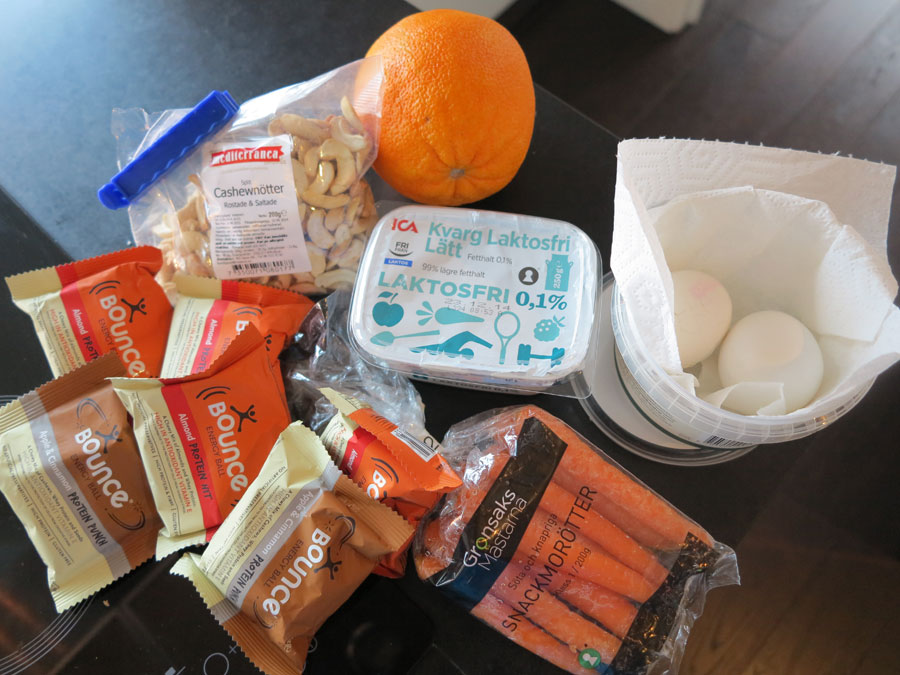 Förutom packa kläder och prylar har jag tömt sopor och saker som inte håller sig i kylen två veckor. Det resulterade bl.a. i smidigt bilåkargodis. Så fort vi rullat iväg är alla hungriga och även jag själv gillar att ha något gott att tugga på. Sen blir det middag på Scandic i Sundsvall.