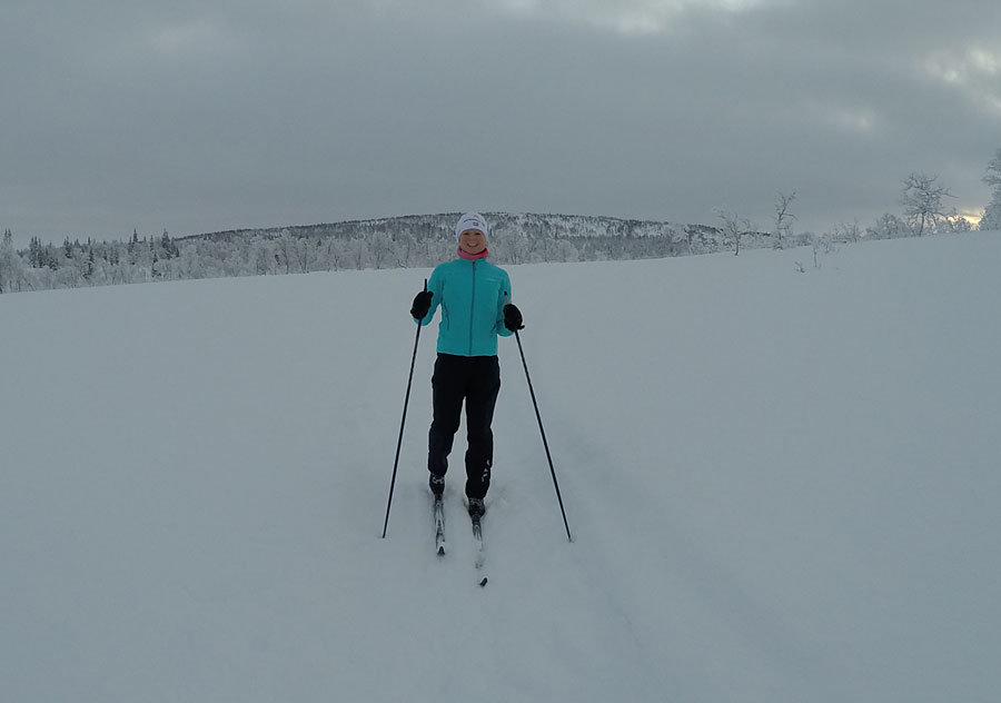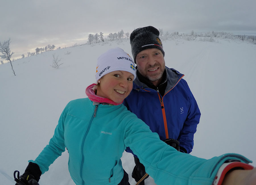 Att peppa igång mina PT-klienter är inte svårt – värre är det med min man. Han ska åka Vasaloppet Öppet Spår med mål att slå min tid på 7,5 h, och då tycker jag det är är dags att börja träna på äkta vara istället för SkiErg. Efter några ”det är för kallt” och ”ska bara” fick jag med honom upp på Blåsjöfjället igår. Där har grannen dragit ett fint 5-kilometersspår.