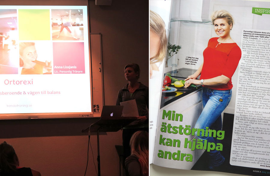 Jag föreläste även om min ortorexi, var med i Wellness-TV, hade en diskussionskväll och var med i Women´s Health och Må Bra. Det är kanon att vi blir mer öppna om ätstörningar som tyvärr är så vanligt av olika grad. Att använda mat att kontrollera känslor genom att över- eller underrätta gör var och varannan människa. Inte alltid så det blir skadligt, men medvetenhet ökar förståelsen och möjligheterna att hjälpa varandra.