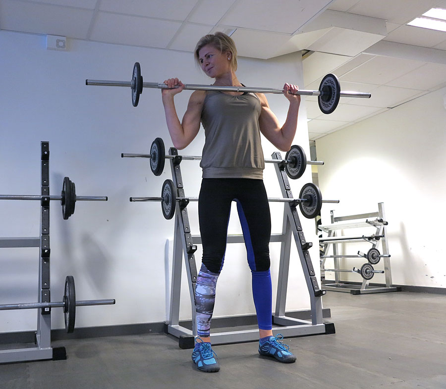4. Räta ut benen. T.ex. knäböj, frontböj, benpress, utfall och splittböj.