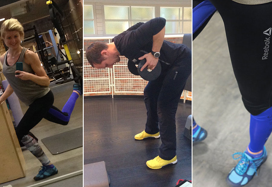 Ett år sen, men samma gym, samma gamla Anna, samma gamla Erik, och samma märken på flera plagg i min träningsoutfit: Tights – Reebok, strumpor – Gococo, skor – Merrell.