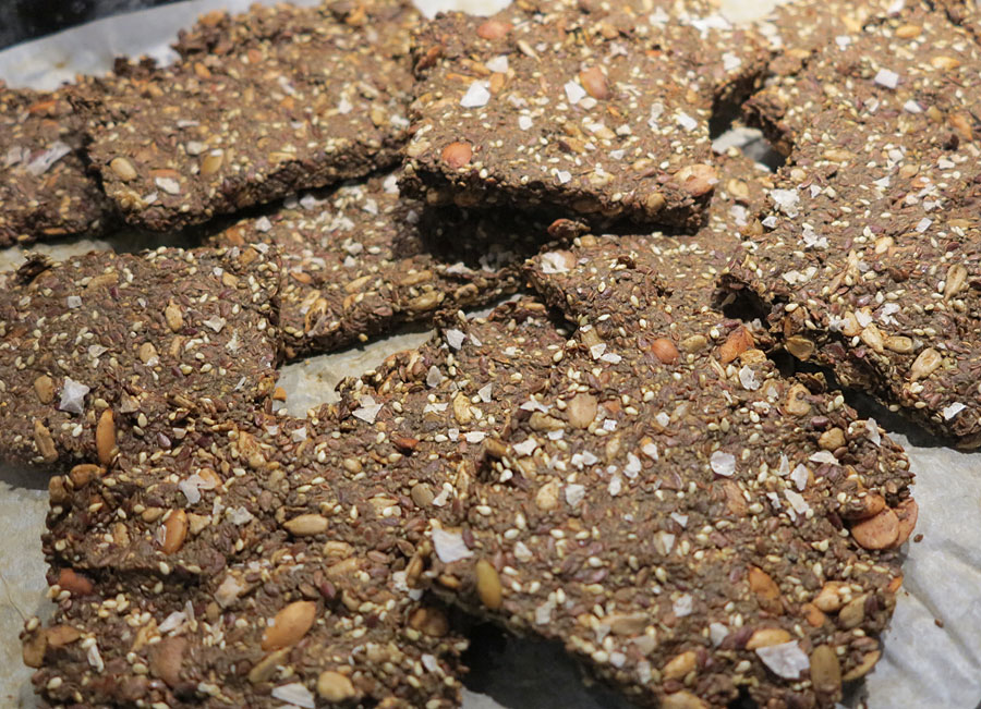 Ytterligare ett trendigt och gott mellanmålstips är fröknäckebröd. Jag älskar detta nötiga, knapriga bröd, och pricken över i är att strö flingsalt över. Ta de fröer du har hemma, eller varför inte testa Risentas nyheter – Hampa och Vallmofrön? Min mix brukar bestå av: