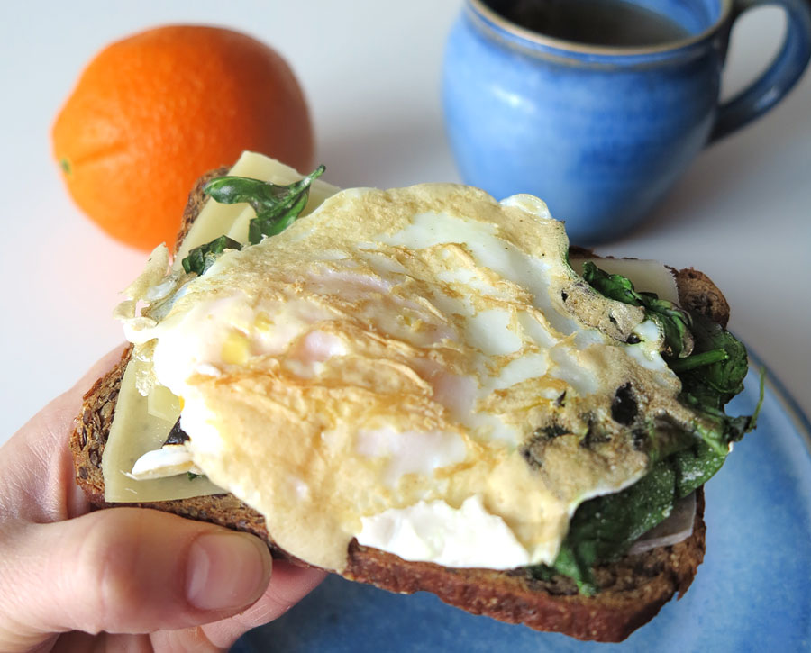 Att leka med maten. Twista till en äggmacka genom att låta bladspenat steka ihop med frukostägget…