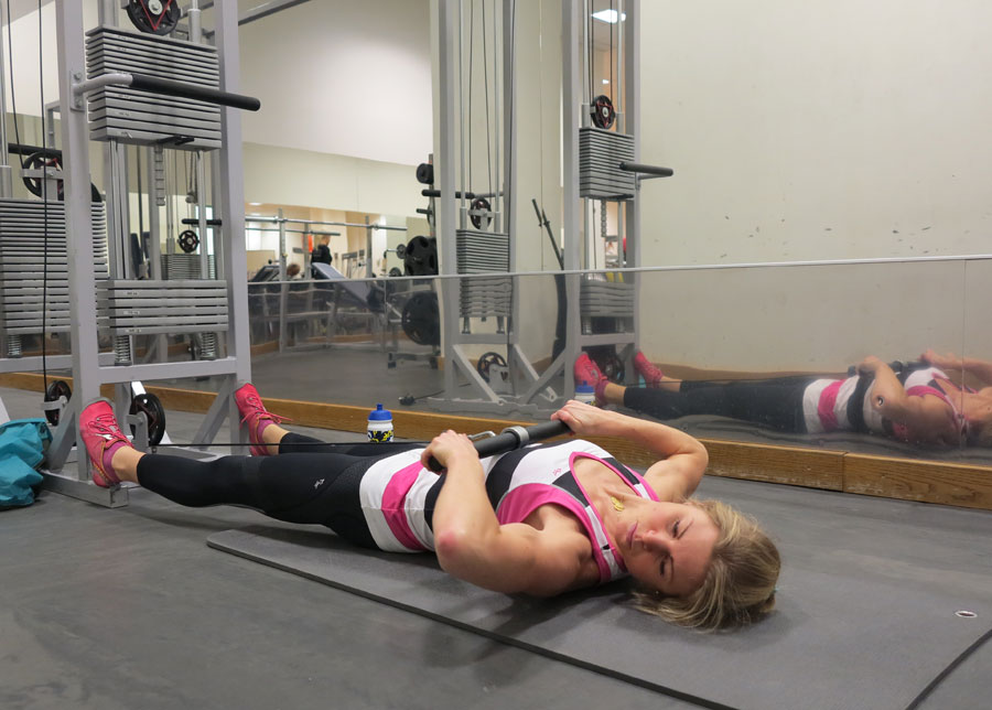 - Liggande axeldrag till bröstet (bild ovan), 3 set