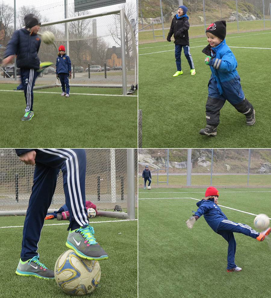 Bara när det gäller mitt eget fotbollslag. Det avgudar jag mest av allt, och jag är glad att de inte ärvt min bollrädsla. De älskar istället sporten såpass att storbarnen är ute och spelar till kl 22 om kvällarna och vill träna utöver alla matcher och träningar. Igår åkte vi till Hjorthagens IP så de fick spela, och jag platsar i alla fall bra i Jonna och Juniors lag. Där är både handboll och självmål mer regel än undantag.