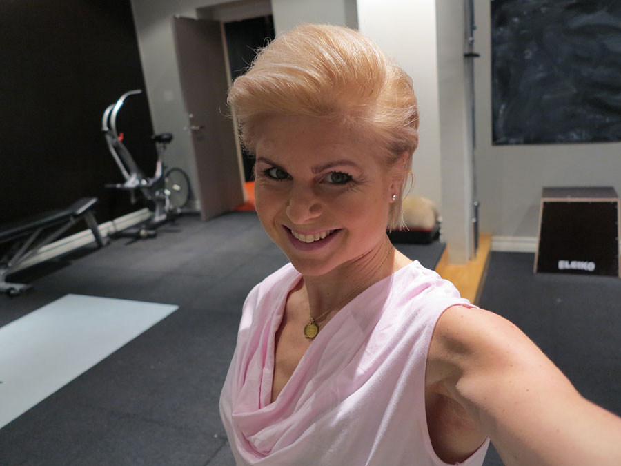 Eftersom mina föräldrar bor 90 mil bort är det sällan de kan vara barnvakter. Därför var det kanon att jag lyckades trycka in så mycket trevligheter på gårdagens schema. Speciellt de små avgudar mormor och morfar vilket gör det lättare att slappna av och lämna hemmet när Jonas är bortrest, och något jag länge skjutit upp är frisörbesök. Här ser du resultatet närmare i form av en selfie efter sista PT-kunden, före mingelkvällen. Jag är nöjd men ska nog gå tillbaka och be om en mer isblond än guldig nyans.