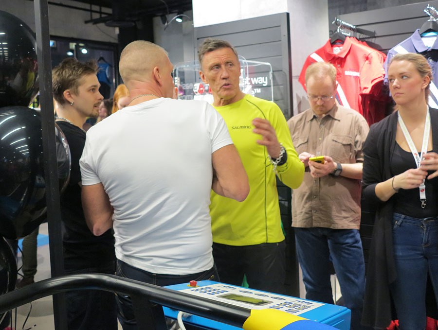 Jag kom lite sent och missade presentationen, men kikade runt på butikens utbud. Här hittar du Salmings 3e bok ”Legenden”, underkläder, löpskor, innebandyklubbor, pulsklockor, tränings- och badkläder för såväl herr, dam, barn och mycket mer.