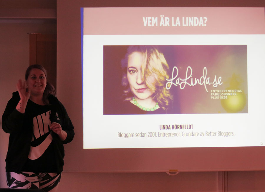 Men för att ta bloggen en nivå högre och kunna tjäna pengar genom samarbeten med företagen gäller det att vara proffsig och mån om sitt personliga varumärke. Detta pratade Linda Hörnfeldt om vid föreläsningen ”Branding Your Blog – så tänker du strategiskt kring ditt personliga varumärke”. Bloggen bör bl.a. spegla vem du är utseendemässigt med val av färger, bilder etc. Vilken känsla vill du ge läsaren och vad förmedlar du?