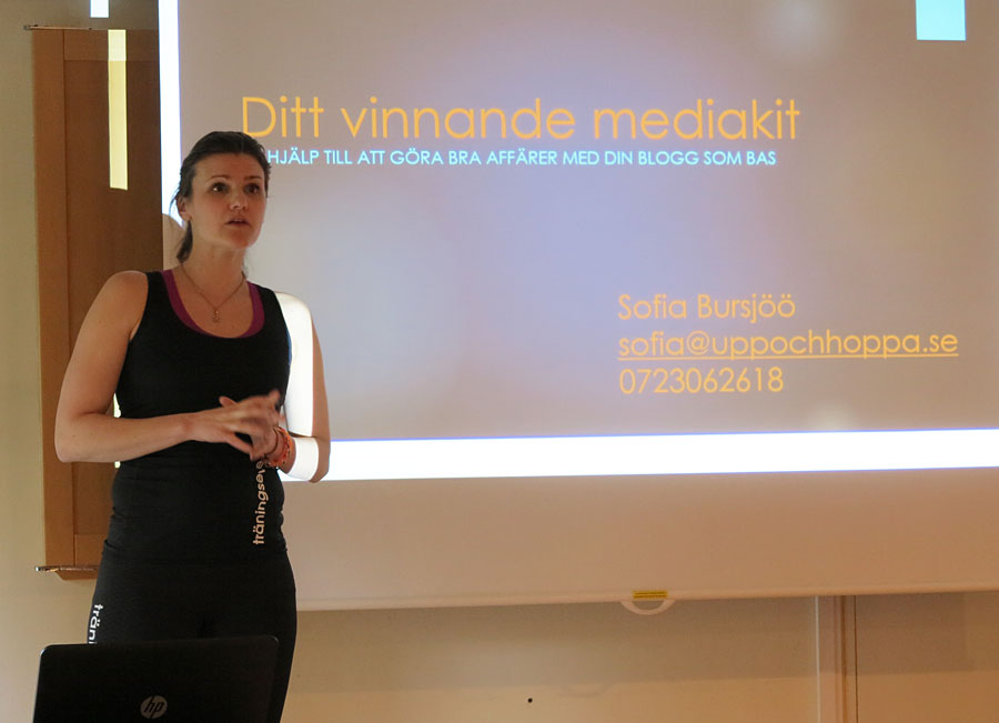 Ännu mer affärsinriktat bloggande pratade Sofia Bursjöö, en av grundarna till Blogger Boot Camp och Träningsevent.se, om vid föreläsningen ”Ditt vinnande mediakit”. För oss som vill utveckla mer samarbeten yrkesmässigt än att testa produkter och gå på pressvisningar är ett mediakit, d.v.s. bloggarens CV, ett bra redskap. Här samlar du all din statistik, vad du kan erbjuda, priser för annonsering, tidigare samarbeten, ”skryt” m.m. Precis som när du söker vilket jobb som helst behöver företaget veta vad du kan ge dem.