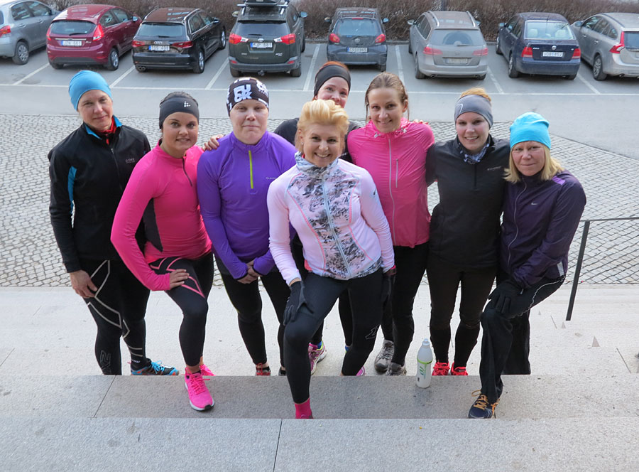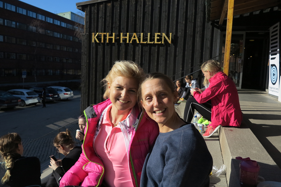 Många har nog vaknat upp med trötta och ömmande kroppar efter gårdagens Blogger Boot Camp, men själv känner jag mig fräsch och har inlett dagen med en joggingtur. Jag såg eventet mer som en chans att lära mig mer om bloggbuisness, nätverka och träffa vänner än att köra slut på mig (även om det också är skönt ibland). Och att leda min löpklass förstås, men som deltagare var det mys före fys som gällde. På bild ovan med fina Linda Sjölund som jag jobbat ihop med i ca 10 år på KTH-Hallen, idrottshallen där Blogger Boot Camp nu hölls. Vi hann uppdatera oss med vår livsstatus under en lunch på trappan, KTHs berömda hak att hänga soliga dagar och där jag ätit många måltider.