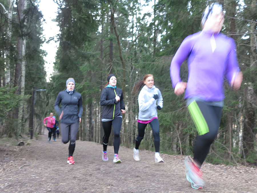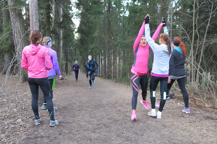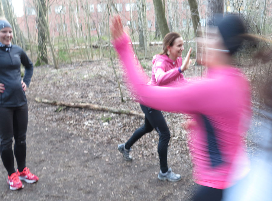Alla var trötta i benen men med pepp av varandra gav de järnet 12 gånger uppför backen. Bevis på att psyket många gånger är starkare än musklerna. Jag värmde upp dem med löpskolning, sen gick vi utfallsgång + tåthäv uppför medan jag förklarade backlöpningsteknik. Efter det fick de testa olika långa intervaller uppför och avsluta med stafett i par. Att de tränat hela dagen syntest inte. Fantastisk starka och positiva tjejer, och efter en avslutning med hög puls fick de varva ner med lätt jogg och rörlighetsträning.