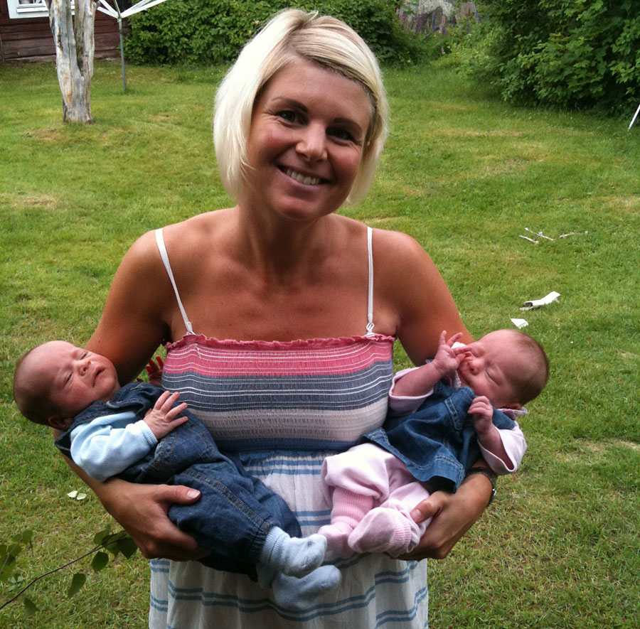 Det har blivit mycket inriktning på gravida på sistone, dels eftersom jag tränar flera gravida tjejer, och dels p.g.a. min egen post gravidmage. Dagens tema inom området är amning i kombination med träning. Bilden ovan är från midsommarafton 2011 då Junior och Jonna var ca 1 månad och ammade konstant. Jag minns den sommaren som i en lycklig med trött och varm dimma i soffan. Sommaren var extremt varm det året och tvillingarna var klistrade vid brösten, och mitt andrum var att gå vagnpromenader. Men även där fick jag ibland stanna vid vägkanten för att någon av dem var hungrig. Eller sätta mig i soffan för att amma omedelbart efteråt – dusch och ombyte till torra kläder prioriterades inte.
