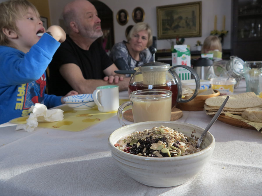 Vi sitter i timmar och pratar och njuter vid varje måltid, och eftersom vi redan tjuvstartat påsklovet en vecka i förväg gör vi likadant med maten. Senare idag vankas vårt traditionella påskbord (ex här), men vi har även hunnit med annan typisk ”påsk-i-Jorm-mat”: