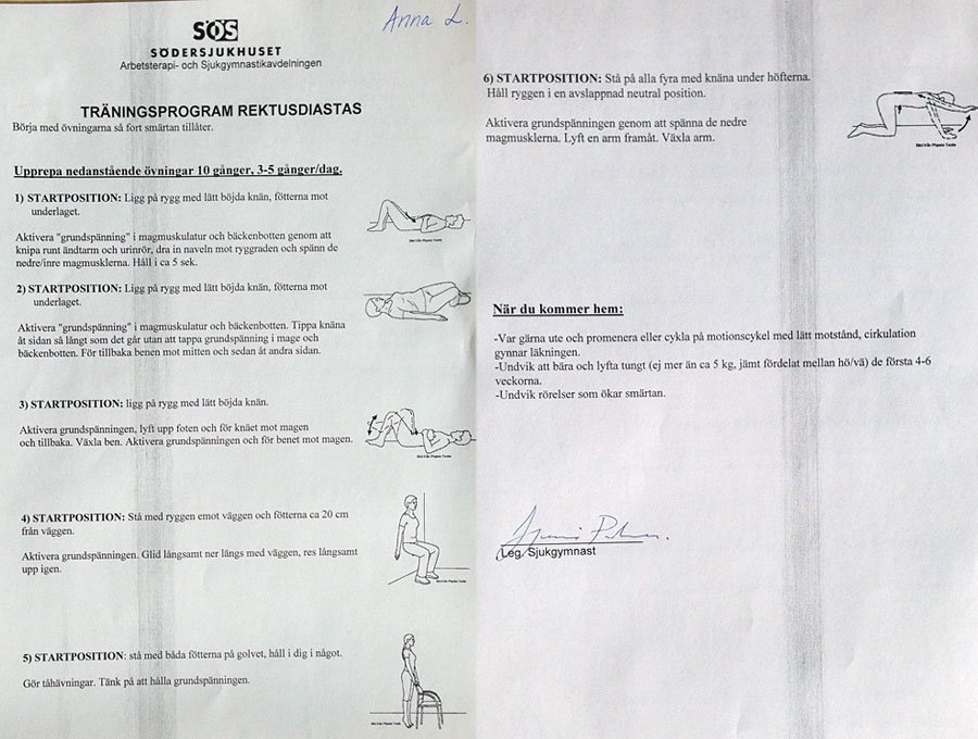 Bilden på dina rehabövningar ”lånar” jag. Har en absurt svag core och saknade ett papper med samlade övningar. Det här blir perfekt och är precis på min nivå just nu.