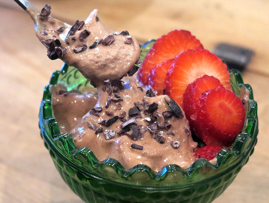 Har redan testat 2 ggr, hade sån tur att jag hade rätt ingredienser hemma. Missade först att blanda proteinpulvret med något – då blev det INTE mousse! 😉 Men det gick bra att rädda genom att mixa i en klick kvarg.