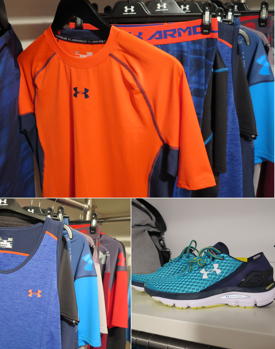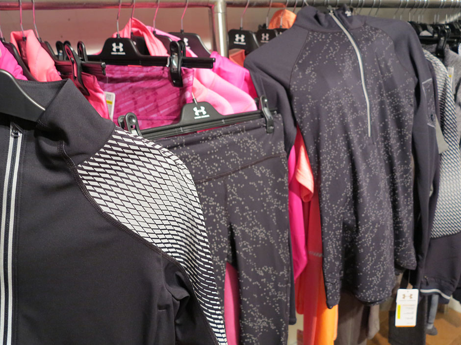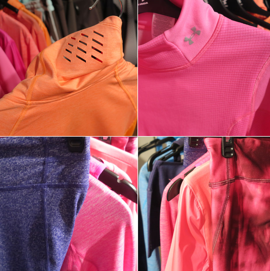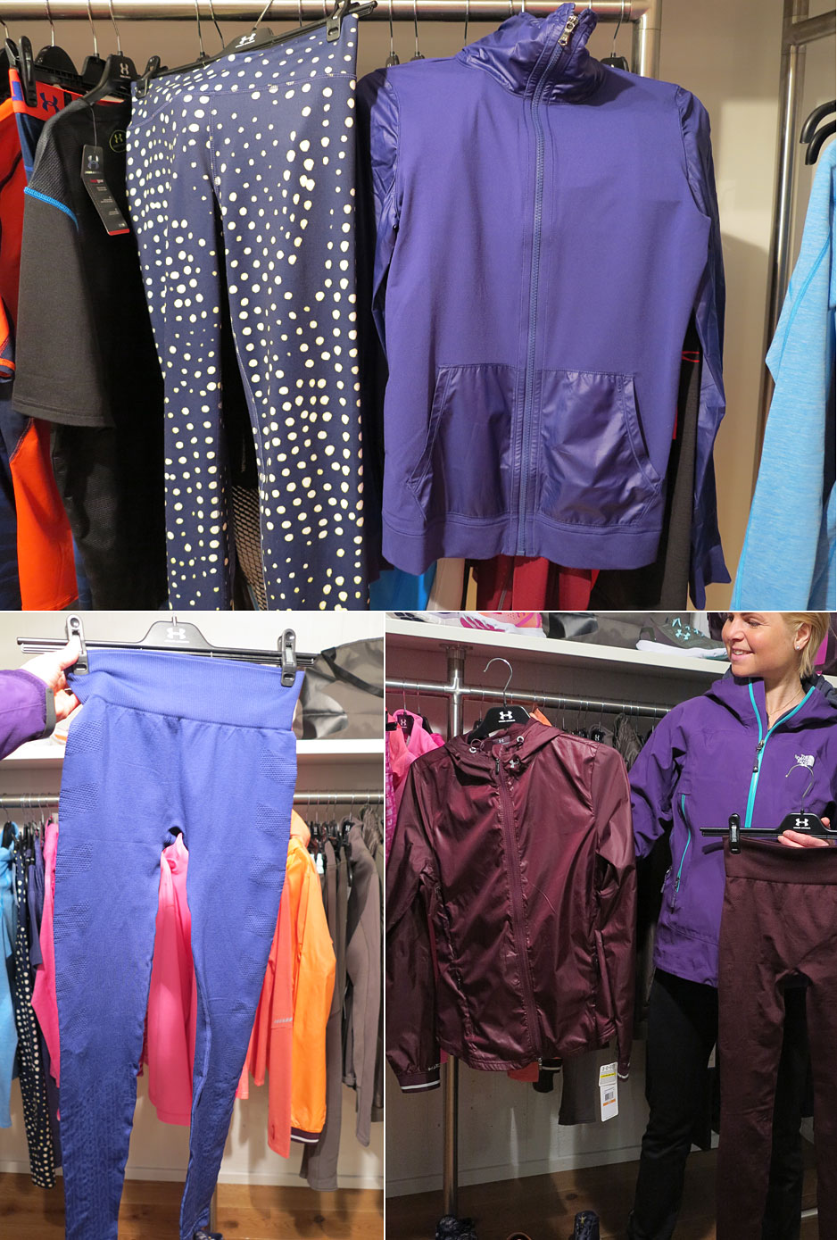Pressveckan mjukstartades för min del med att kika på Under Armour´s höstkollektion hos Presskontakterna i morse. Jag fick ingen närmare presentation av plaggens funktion, men kan i alla fall bjuda på mina egna intryck och bilder av vad vi har att vänta. Här ovan håller jag upp mina absoluta favoriter. En tunn, blank vindjacka och seamless tights i en plommonlila/brunaktig nyans. Mycket elegant och höstigt. Just färgvalet är något jag alltid gillar med Under Armour´s kläder. Att de vågar blanda upp allt rosa med lite tuffa och mer maskulina” nyanser även på damkollektionen.