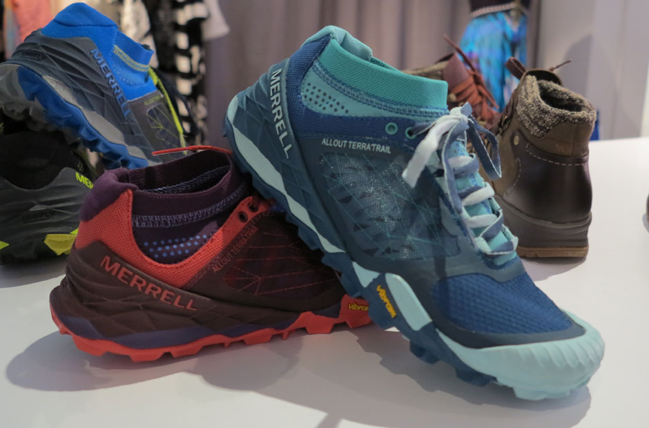 Ytterligare en cool nyhet var Merrell All Out Terra Trail som ger ett 360°-skydd runt vristen. Du slipper grus och stenar i skon och får bra grepp av en grov, diamantmönstrad sula. Slitstark och snabbtorkande med reflexdetaljer och en innersula behandlad med antibakteriellt medel som förhindrar dålig lukt – något som även All Out Ice Waterproof har.